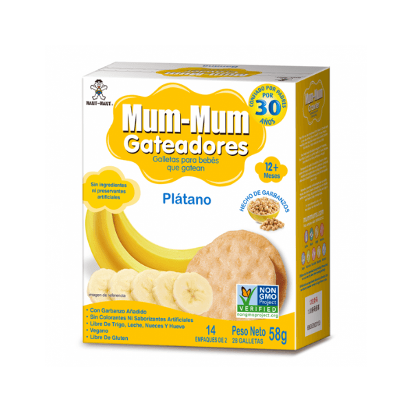 Etapa 2 de la familia Mum-Mum. Snack saludable para bebés que gatean a partir de los 12 meses. Endulzado con jugo de fruta natural, sin preservantes, colorantes, ni azúcar añadida y libre de sellos.