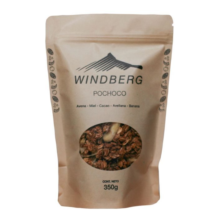 Exquisita granola 100% natural elaborada con avena, miel, cacao, avellana y banana.