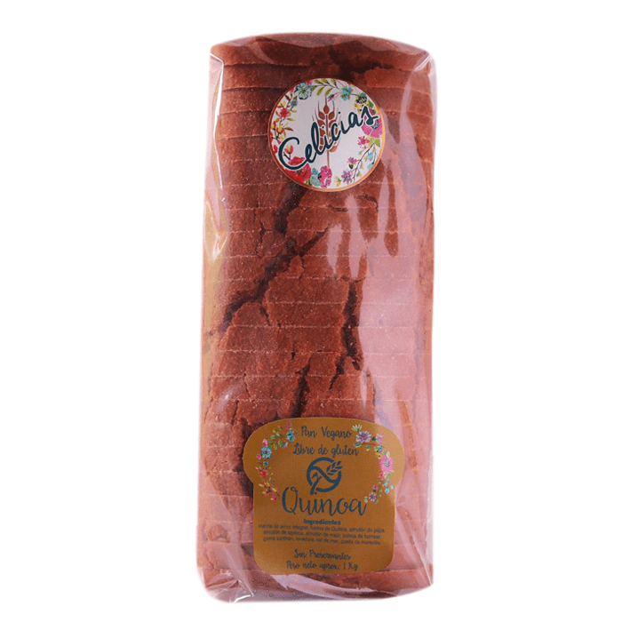 Elaborado con mezclas de harinas libres de gluten como arroz integral, hojuelas de avena, almidón de mandioca, de papa o maíz. Sin preservantes.